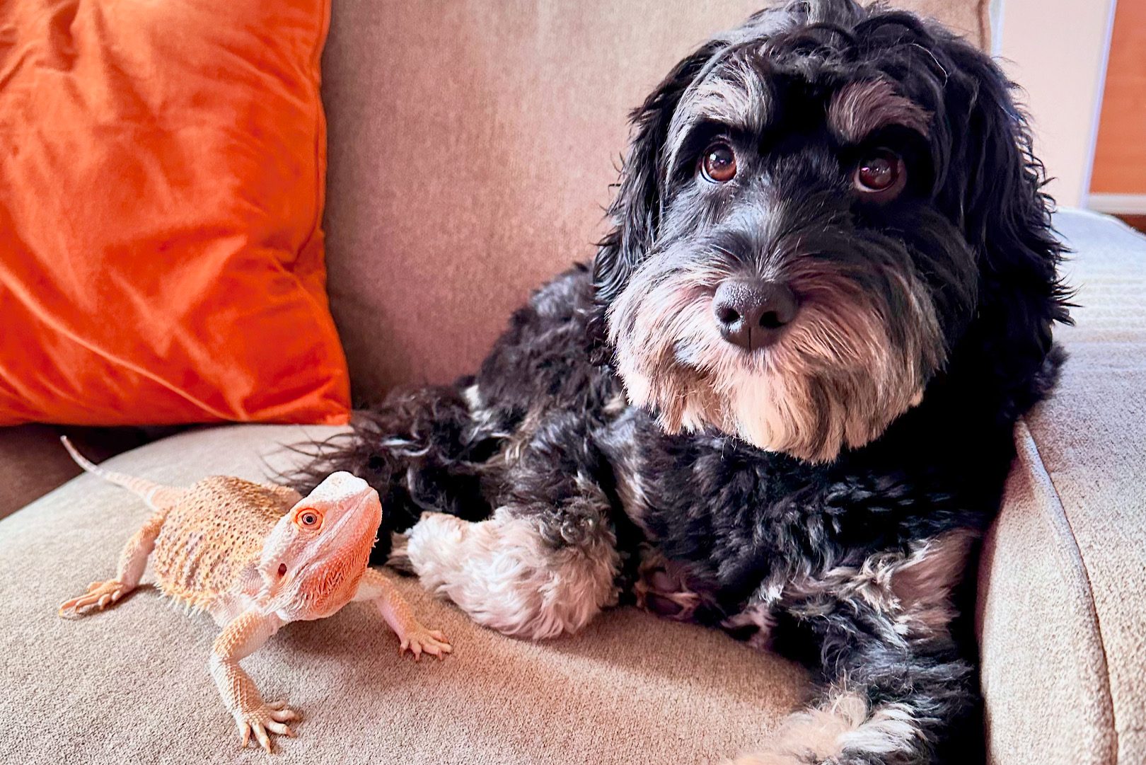 Newton, Puff and I are a happy little family unit of cohabitating species. It may seem odd to some, weird to others, but when you find a life that you love and that works for you… hold on to it, no matter what the rest of the world sees or feels. I know in my heart of hearts where my love and loyalties lie, and it’s not just with my human family. My humans mean the world to me, but they do not cohabitate with me. They are not with me day in and day out, seeing my ups and downs, living my joys and my sorrows, giving me their love and loyalty. My babies are. My dog and my dragon. Newton and Puff. This is my family. My heart. Don’t ever underestimate the value and importance of non-human connections, how they can change your life and feed your soul.